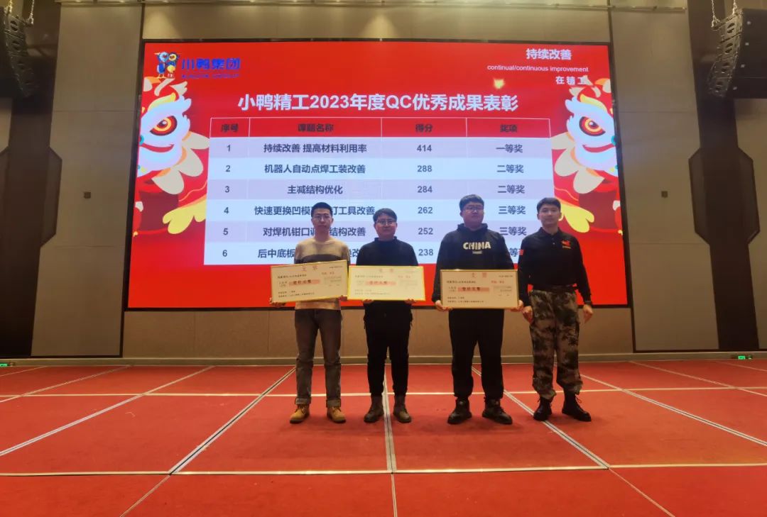 降本增收節支,取得進步個人品德,連續換代。1二月30日,小鴨專業技術2023-5年度QC優良攻效被評為會在萊蕪舉行英語。顛末一年下來的優選和準備好,就有6個類別在某次會場上表態,攻效內容涵蓋新汽車零主件物質、驅動橋物質、汽車輪轂裝置物質、模具設備物質、POS機人操作等。