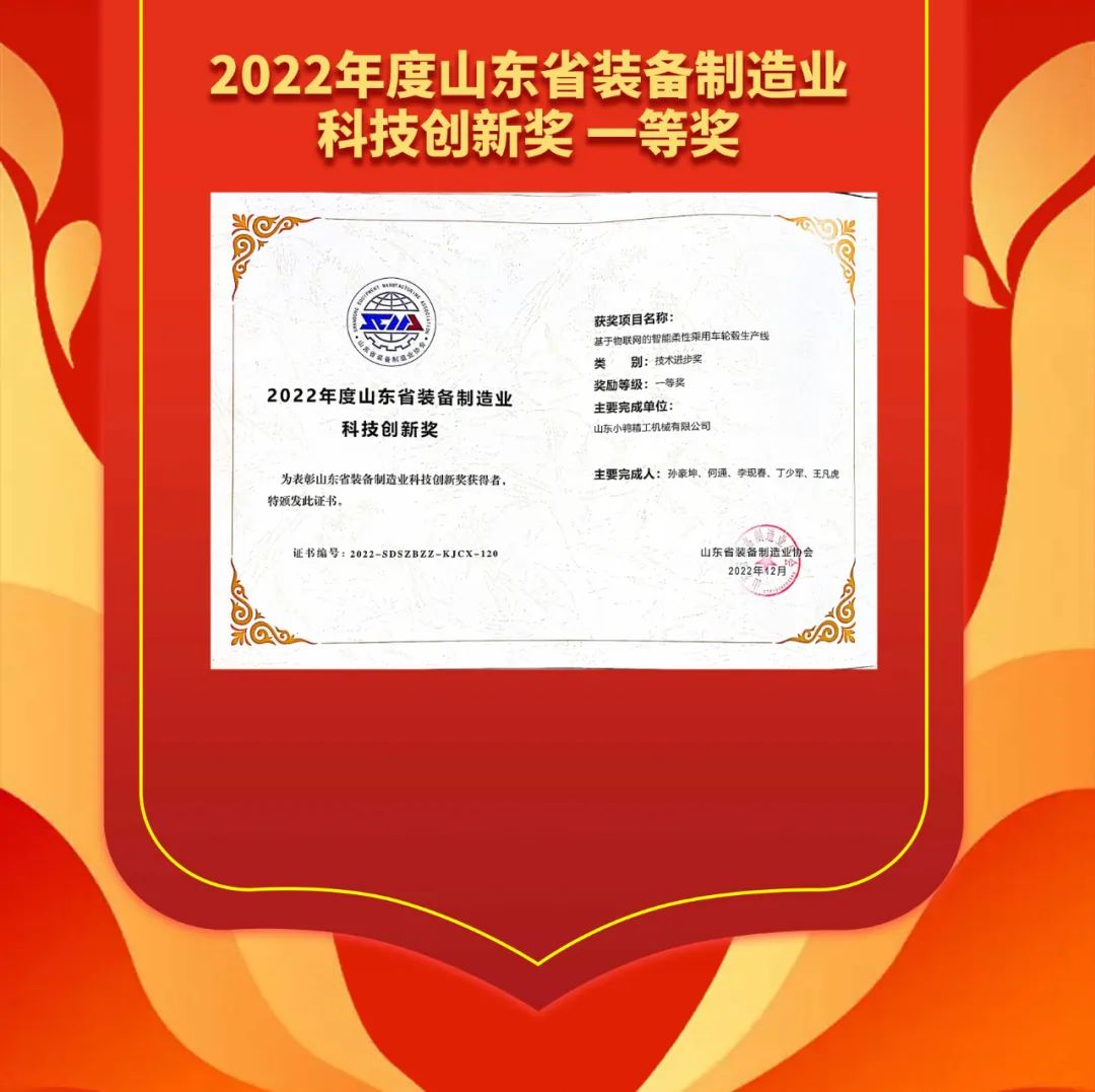 作為協會常務理事單元,小鴨精工憑仗基于物聯網的智能柔性乘用車輪轂出產線榮獲“2022年度科技立異樹模單元”“2022年度科技立異一等獎”聲譽稱呼。
