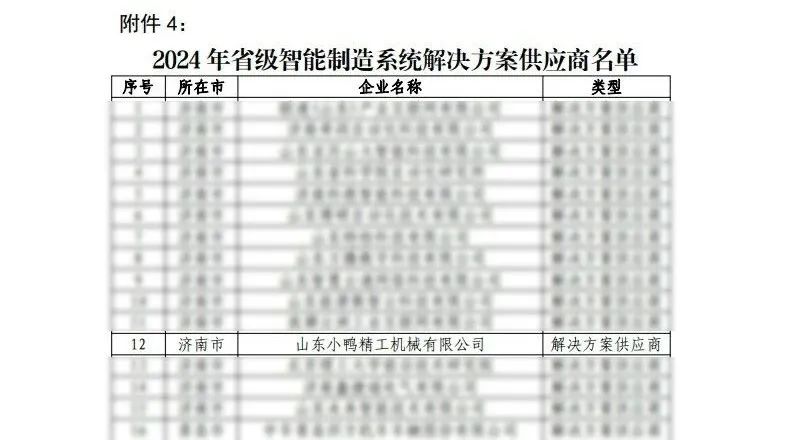 克日,按照《山東省省級智能制作體系處理計劃供給商培養認定方法》(魯工信裝〔2022〕42號),經企業報告、各市保舉、專家評審等法式嚴酷挑選評價后,小鴨精工獲2024 年“省級智能制作體系處理計劃供給商”聲譽稱呼。
